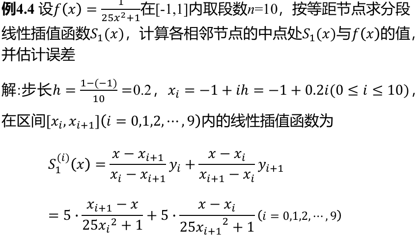 是在区间[a,b]内的每一个小区间\([x_i,x_{i+1}]\)内的线性插值函数,其在\([x_i,x_{i+1}]\)内的表达式为: