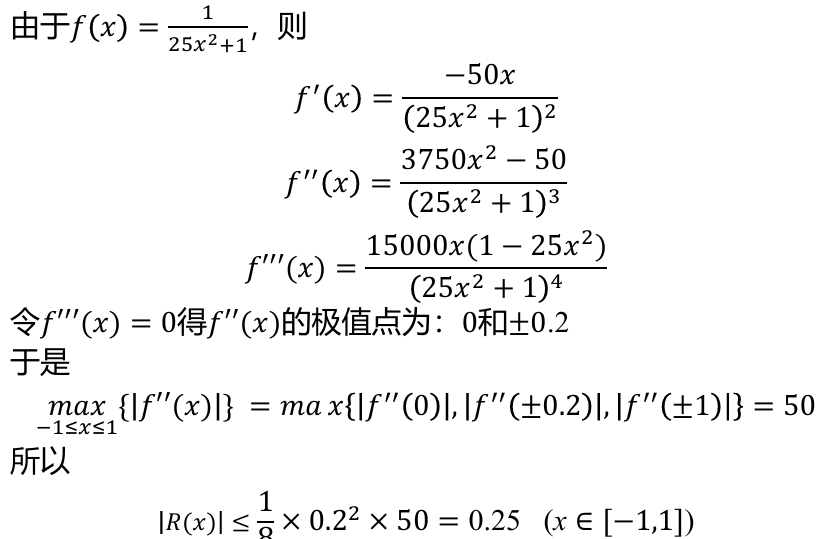 其中 \(h=\max\limits_{0\leq i\leq n-1}\left\vert x_{i+1}-x_i \right\vert , M=\max\limits_{a\leq x\leq b}\left\vert f^{''}(x) \right\vert\)。