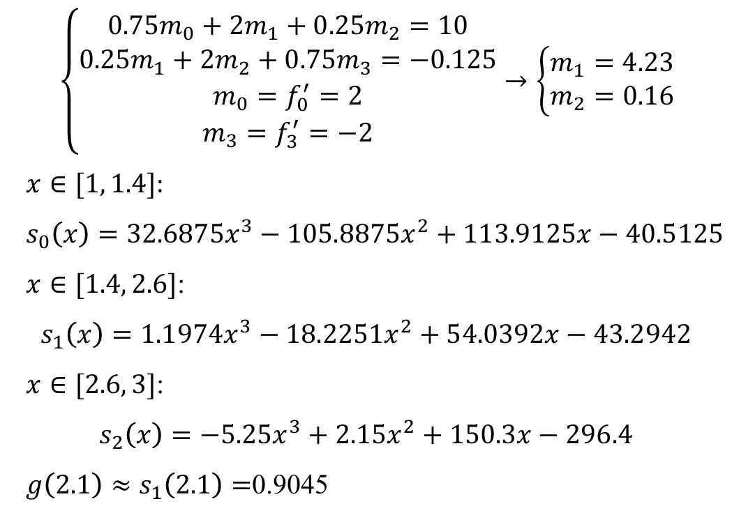 $$ \begin{aligned} S(x)=&\frac{h_i+2(x-x_i)2}{h_i3}y_i\&+\frac{h_i-2(x-x_{i+1})2}{h_i3}y_{i+1}\ &+\frac{(x-x_i)(x-x_{i+1})2}{h_i2}m_i\&+\frac{(x-x_{i+1})(x-x_{i})2}{h_i2}m_{i+1} \end{aligned} $$