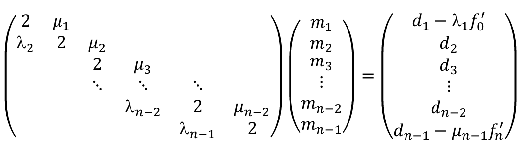- 求 \(\pmb{\mu_i=\frac{h_{i-1}}{h_i+h_{i-1}}}, \qquad i=1,\dots,n-1\)